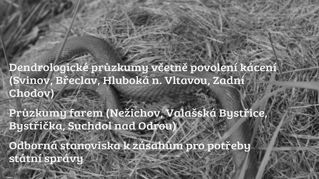 Biologické průzkumy jsou často vyžadovány orgány ochrany přírody u menších záměrů v potenciálně biologicky cenných územích, a to nejen u novostaveb, ale také například u rekonstrukcí rybníků, nebo u terénních úprav. Často provádím preventivní průzkumy pro identifikaci hodnot a rizik na místě plánovaných záměrů.
