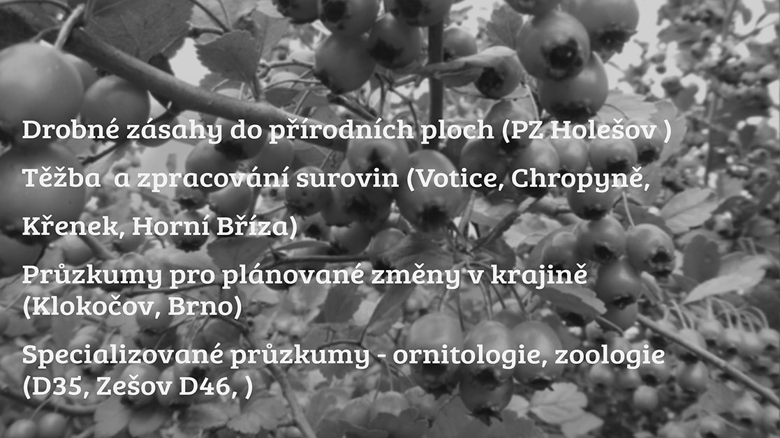 Biologické průzkumy jsou často vyžadovány orgány ochrany přírody u menších záměrů v potenciálně biologicky cenných územích, a to nejen u novostaveb, ale také například u rekonstrukcí rybníků, nebo u terénních úprav. Často provádím preventivní průzkumy pro identifikaci hodnot a rizik na místě plánovaných záměrů.